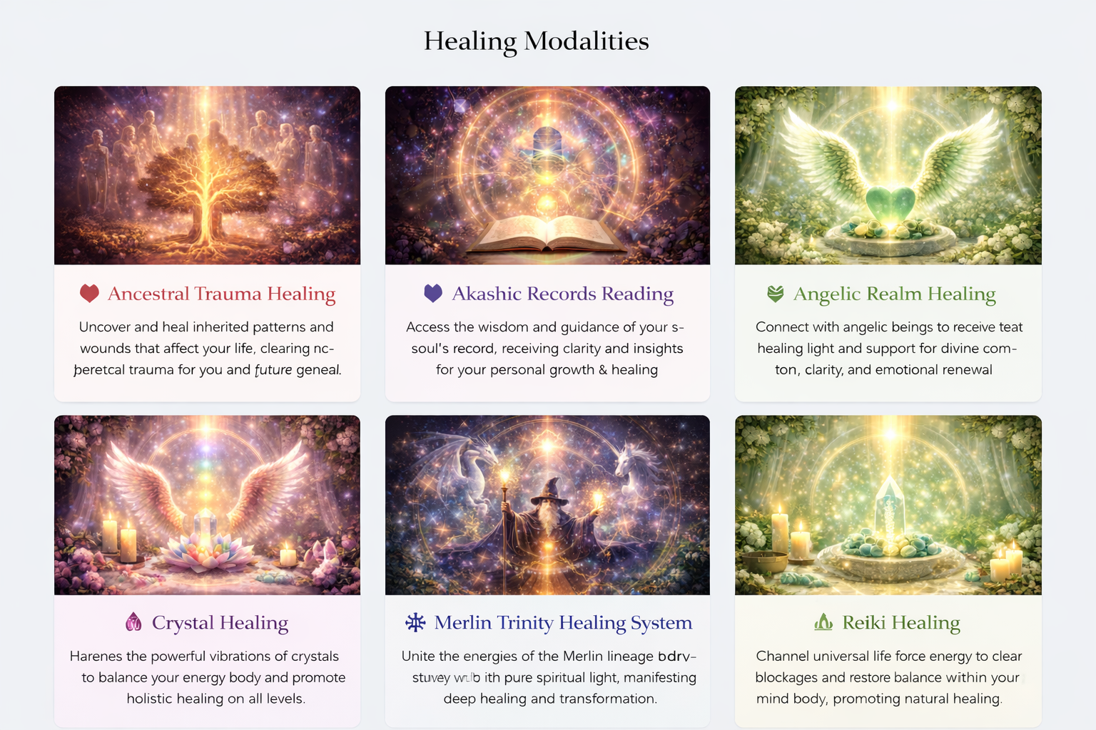 The Merlin Trinity Healing System focuses on deep energetic transformation through high-frequency vibrational healing. This advanced modality works beyond surface-level issues, addressing deeply rooted energetic blocks and consciousness patterns.